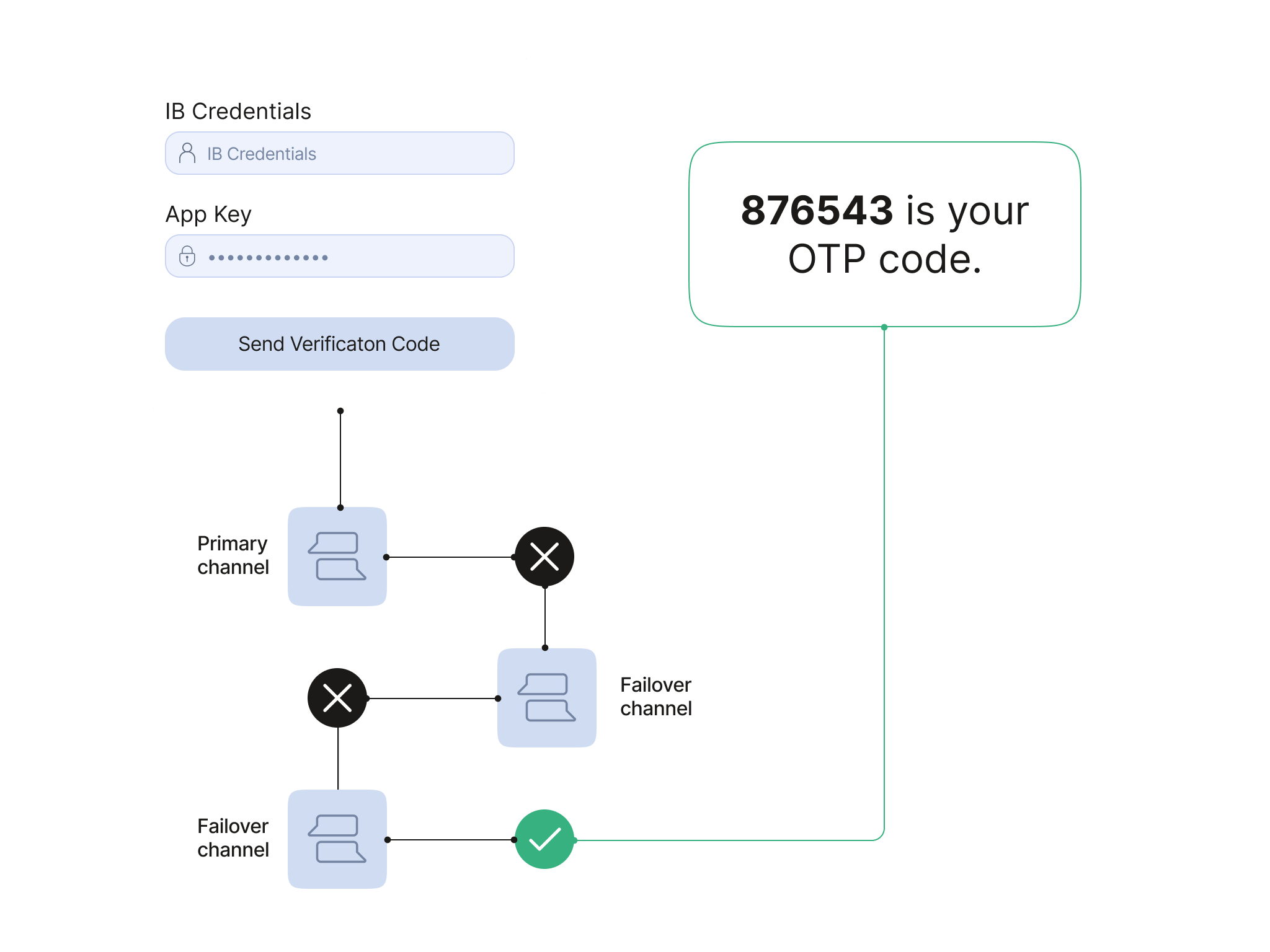 In the event of an undelivered message our failover mechanism seamlessly switches to an alternative channel, ensuring continuous authentication capabilities for your business.
