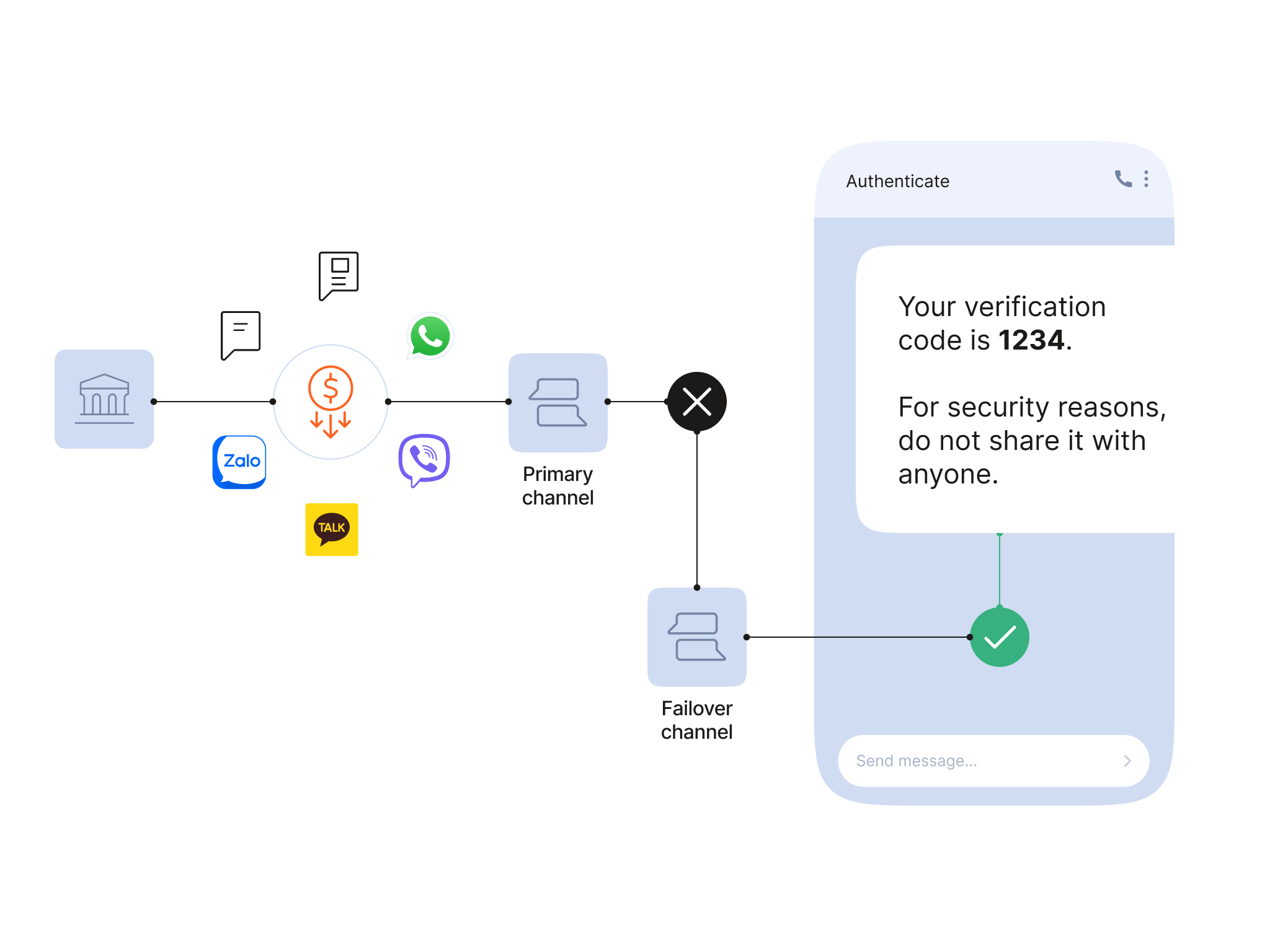 Get every critical message sent with Authenticate reliably, on time and over your region’s most popular channel.