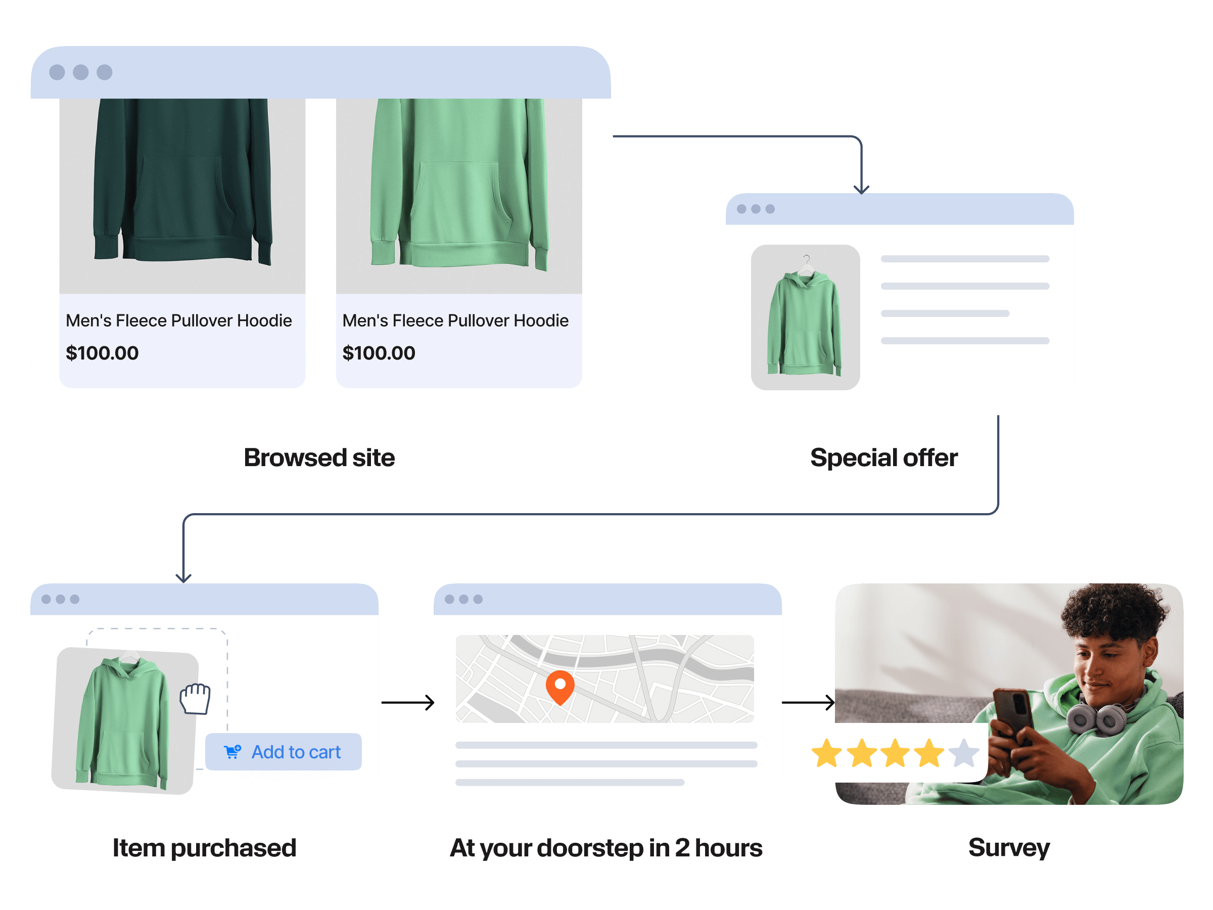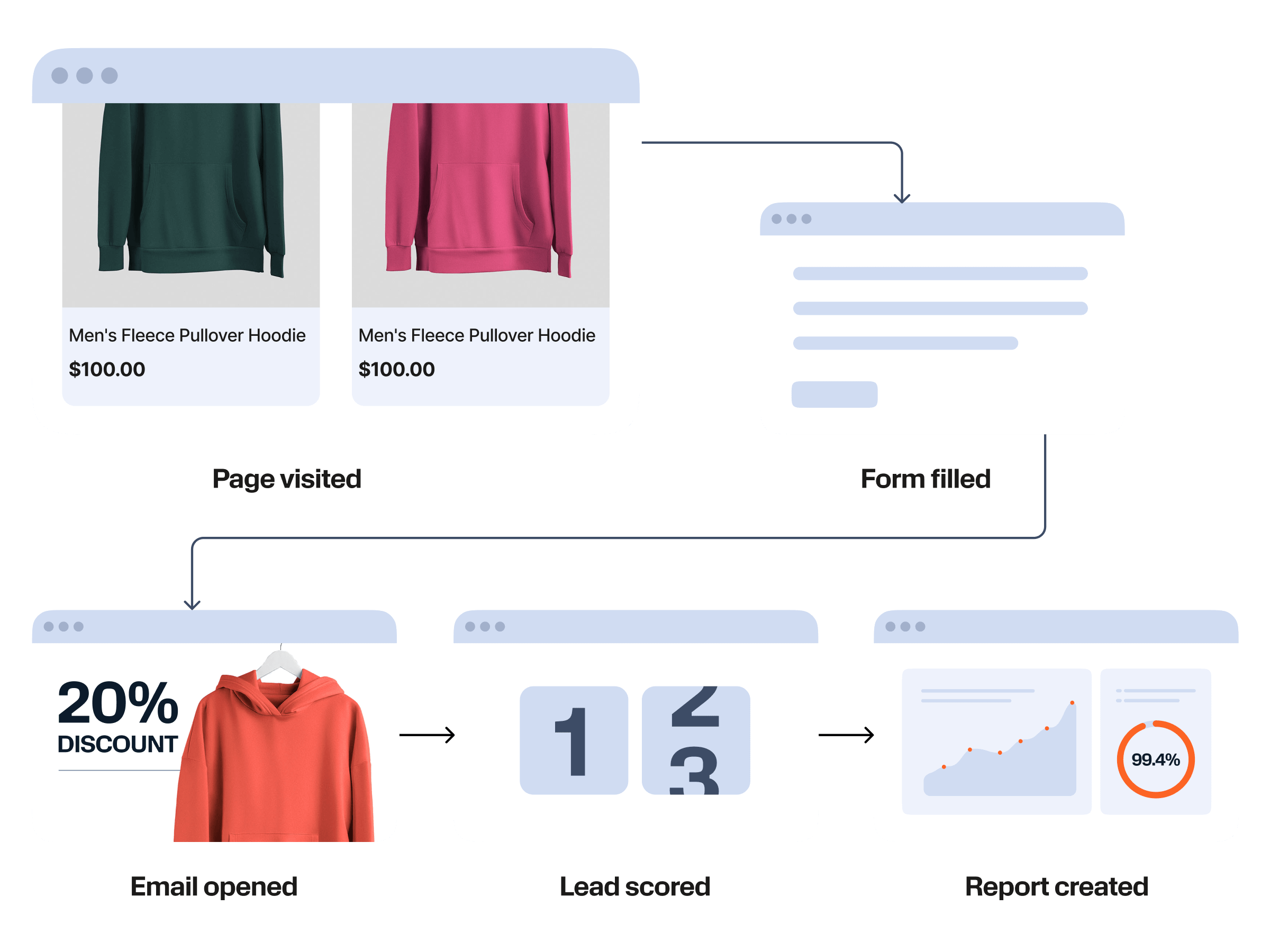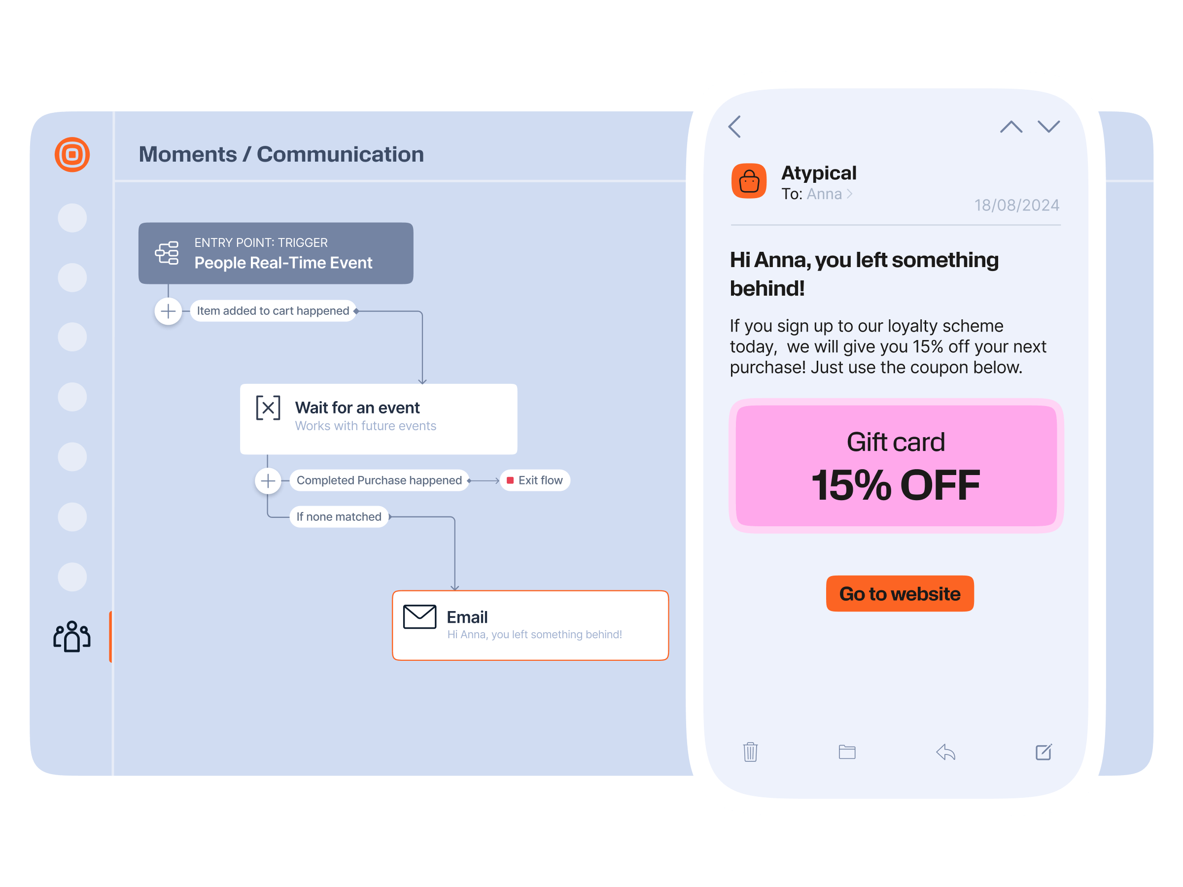 - Use behavioral data to trigger real-time messages in response to customer actions